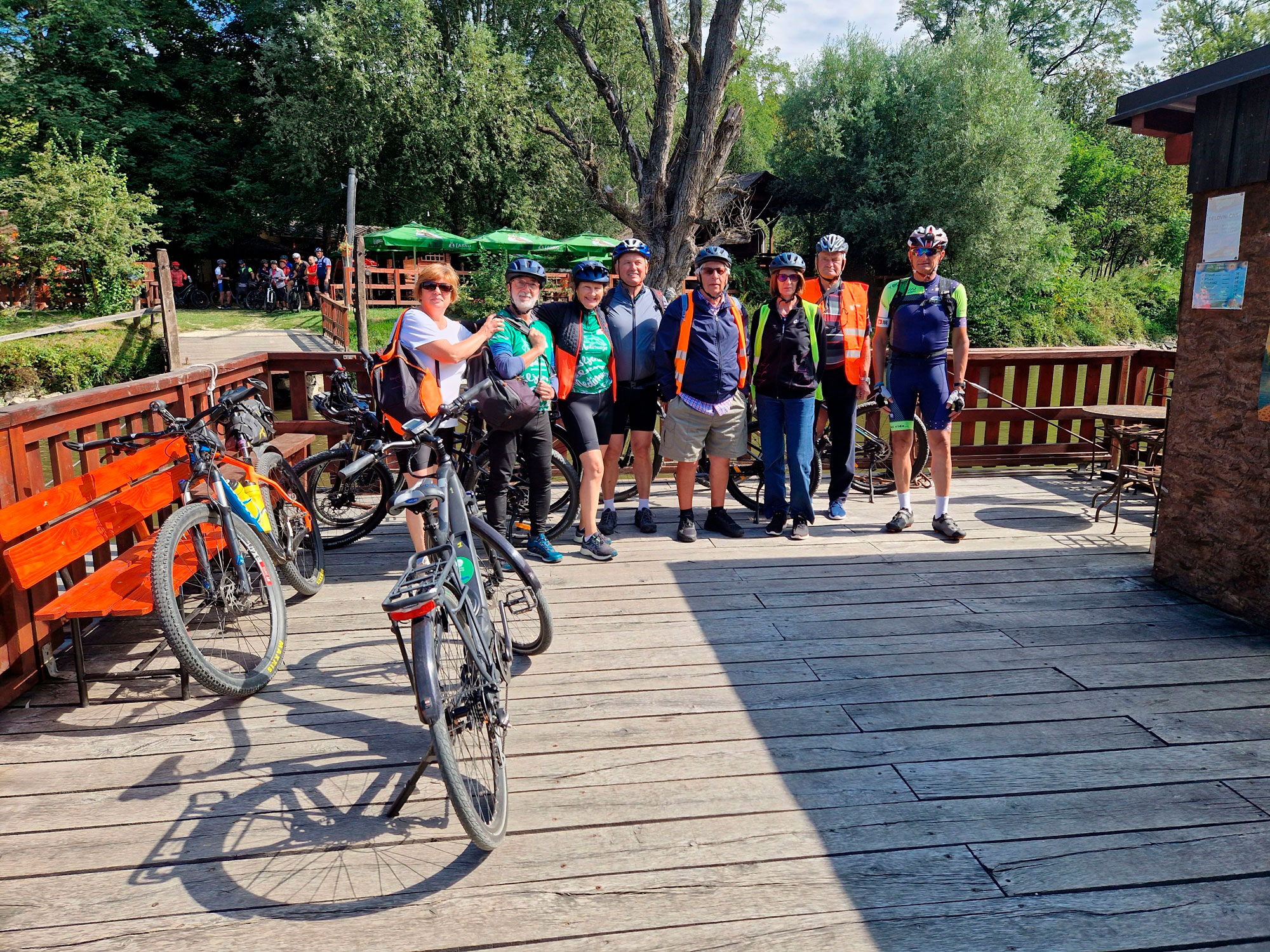 A túrát végig kiváló túravezető kísérte, aki a forgalmasabb szakaszokon biztosította a csoport biztonságos áthaladását, és az esetlegesen felmerülő technikai problémákat (pl. defektek) gyorsan orvosolta. Az elektromos rásegítésű kerékpárok jelentősen megkönnyítették a napi távok teljesítését, különösen a dombosabb szlovén szakaszokon.