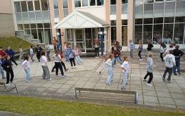 A Csaterbergben elfogyasztott ebéd után a magyar diákokat a Kohfidisch középiskola előcsarnokában üdvözölték. Irene Seier igazgatónő rövid köszöntőjét követően az osztrák és magyar résztvevőkből álló vegyes csapatok izgalmas vállalkozáskereső túrára indultak a településen. A feladat az volt, hogy különböző vállalkozásokat és szakmákat keressenek és a látogatásokat digitálisan dokumentálják.