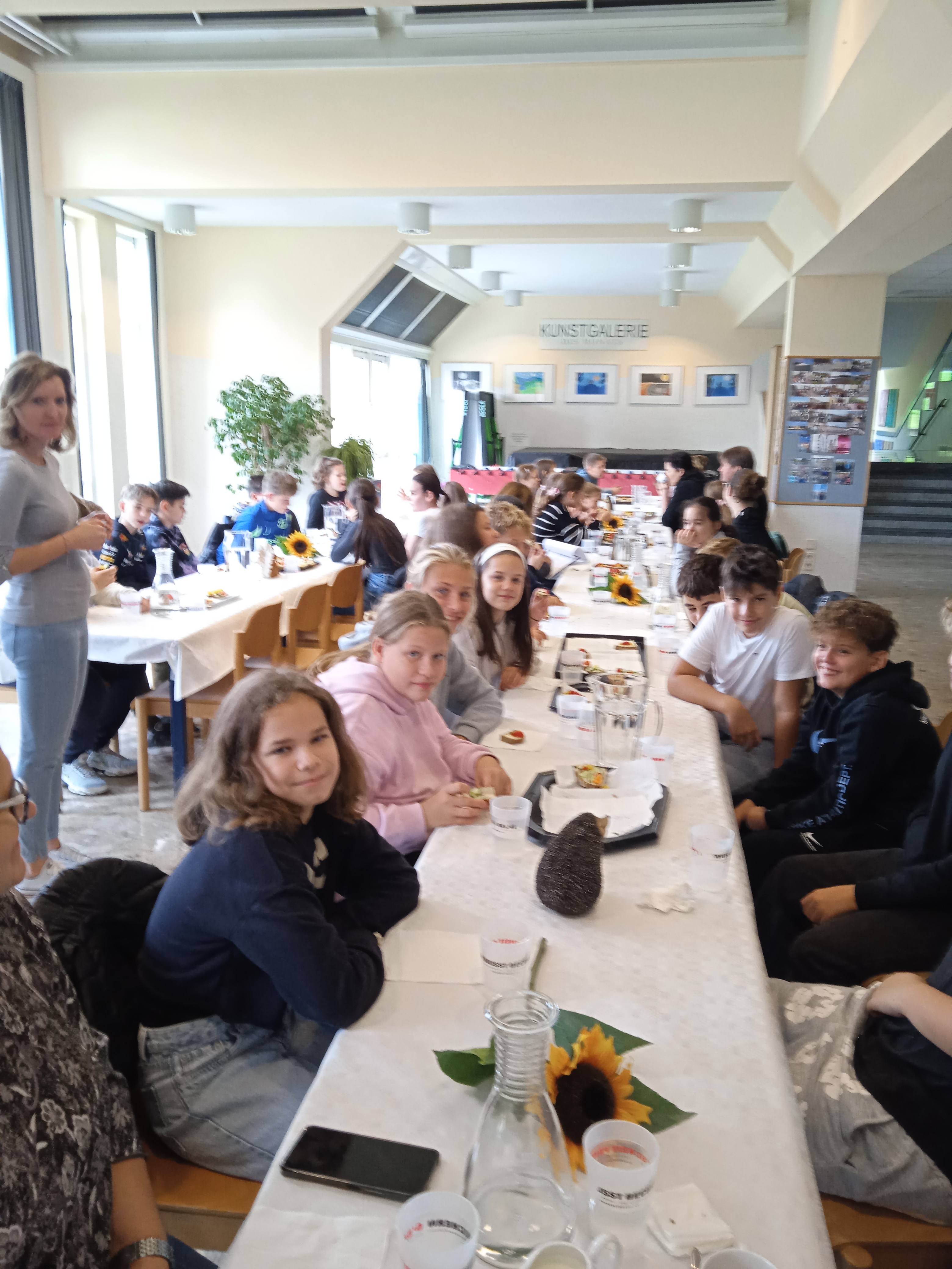 A helyszínen a középiskola diákjai zenével üdvözölték és egy kis uzsonnával várták őket.