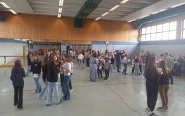 A délelőtti program a Neudörfl-i iskolában zajlott, ahol a résztvevőket Dieter Posch polgármester és Karin Sinawehl igazgatónő köszöntötte. A vendégek megismerkedhettek az iskola modern, tanári elképzelések alapján kialakított tereivel, Neudörfl városával, valamint közös éneklés és iskolabemutató videó is színesítette a délelőttöt. A jó hangulatú „Speed-Dating” program a tornateremben és a közös barkácsolás az iskola műhelyében segítette a diákok közötti ismerkedést.