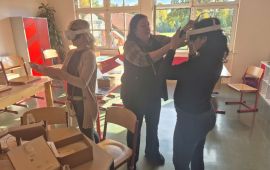 Eközben mindkét iskola pedagógusai kihasználták az alkalmat, hogy intenzív szakmai eszmecserét folytassanak. Különös érdeklődés övezte a VR-szemüvegeket, amelyek segítségével különböző szakmákat ismerhettek meg.
