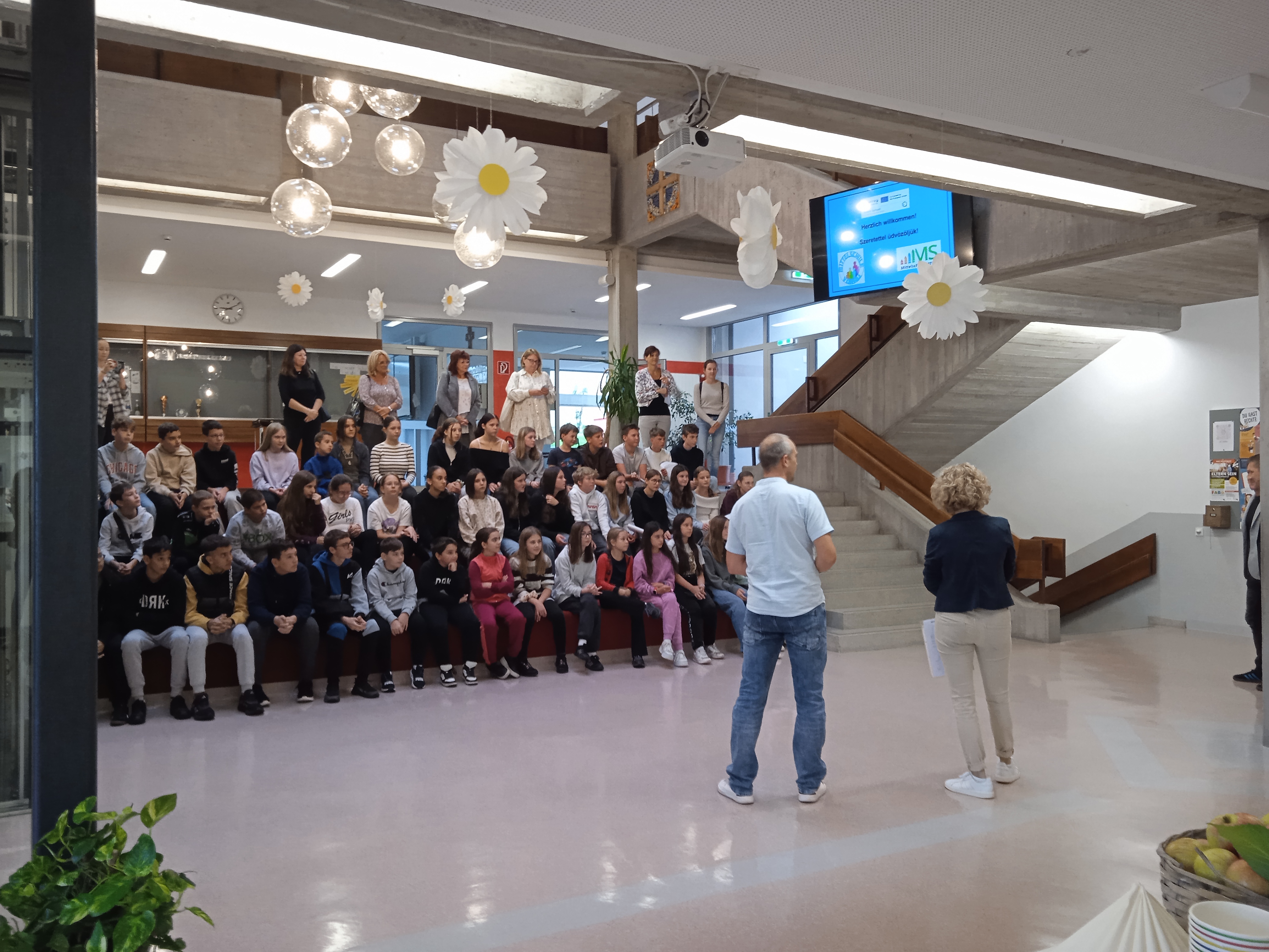 A vendéglátó iskolák szívélyes fogadtatása után Stefan Hold polgármester és az iskola vezetősége köszöntötte a résztvevőket, majd a voraui és ratteni diákok színes műsorral kedveskedtek a vendégeknek. Az előadások között helyet kapott tánc, vers, ének és hip-hop produkció is, amelyek nagyszerűen tükrözték a diákok sokoldalúságát és lelkesedését.